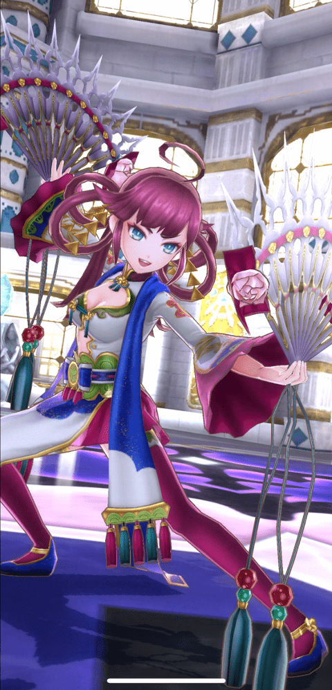 | 覚醒スキル | 麗扇演舞 | - | 2ターンの間、味方横一列の攻撃力を20%上昇する。さらに種族に【獣人】を持つオーブを装備している対象に勇猛のオーラを2個付与する |