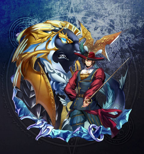 海獣のような姿をしたメギド。集団戦を得意とする勇敢なメギドで、ヴァイガルドに追放された後は傭兵として生きてきた。